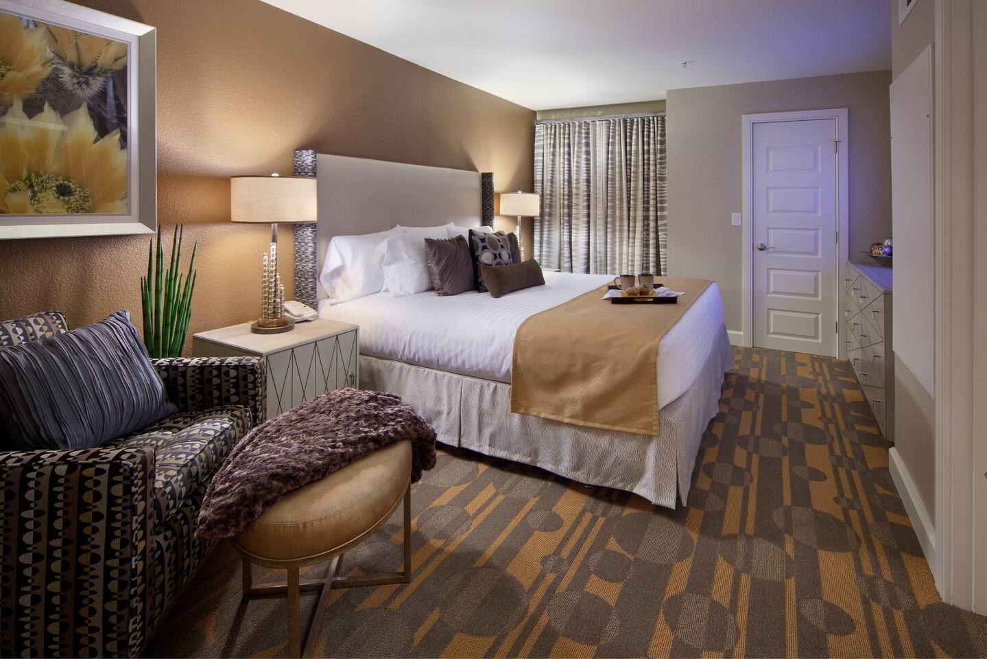 We offer curated hotel quality units with the convenience of a private home and amenities of a world-class resort. **THIS PROPERTY DOESN'T HAVE RESORT FEE. • 2blks from the Strip • 7min walk to Sphere • Private balcony, fireplace, Full kitchen +Washer and dryer • 10 min. drive to MacCarran Int’l Airport • FREE PARKING + WIFI • 5heated pools, Hot Tub and GYM • Accommodate up to 6 people → One person in the group must be older than 21 y/o.